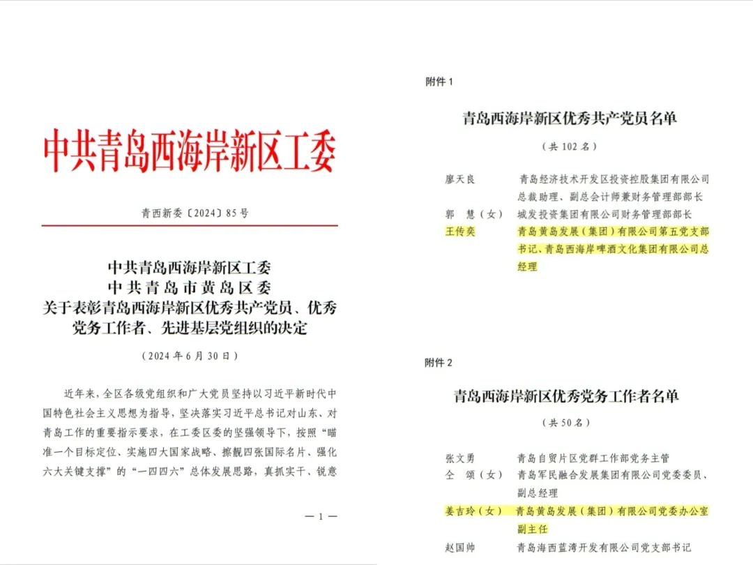 中共青島西海岸新區(qū)工委發(fā)布了《關(guān)于表彰青島西海岸新區(qū)優(yōu)秀共產(chǎn)黨員、優(yōu)秀黨務(wù)工作者、先進(jìn)基層黨組織的決定》,集團(tuán)員工王傳奕、姜吉玲同志分別獲評"青島西海岸新區(qū)優(yōu)秀共產(chǎn)黨員""青島西海岸新區(qū)優(yōu)秀黨務(wù)工作者 "稱號。